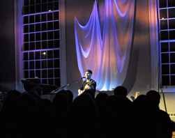 | The Angel show was a near perfect ending to our first season. The evening featured music by Don Cononscenti and Pierce Pettis, with surprise guest Bruce Hayes. Lori Barker's angels graced our walls. Josh Switky, our golden-eared sound man, made this our best sounding show yet. Jamie Burnett created a beautiful light show without overshadowing the music. What a wonderful way to wrap up our season! |
